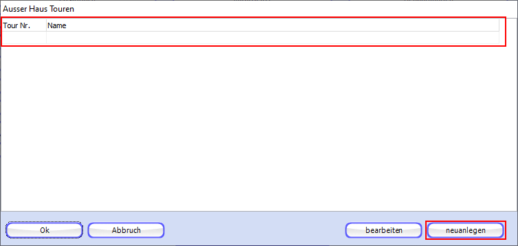 Zum Anlegen einer "Ausser Haus Tour" klicken Sie auf die Schaltfläche "neuanlegen".