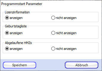 In dem Fenster "Programmstart Parameter" können Sie definieren welche Informationen ihnen PodoPrax® beim Programmstart anzeigen soll.