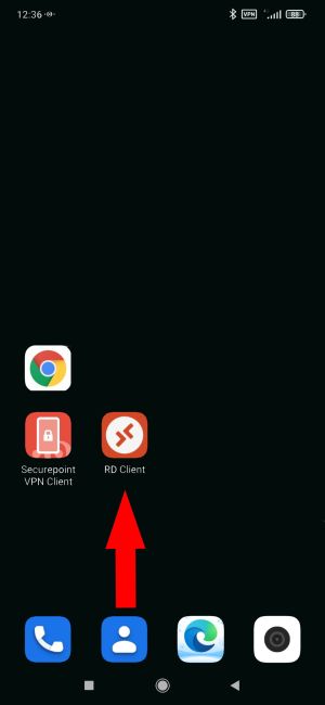Wenn die VPN Verbindung erfolgreich aufgebaut wurde, starten Sie anschließend die zuvor installierte App "RD Client"