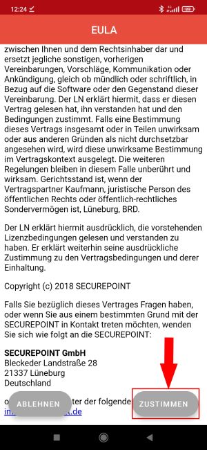Beim ersten Start der App werden Sie aufgefordert die Lizenzbedingungen zu akzeptieren.