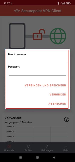 Im Laufe des Verbindungsaufbaus werden Sie aufgefordert ihre Nutzderdaten, welche Sie erhalten haben, einzugeben.