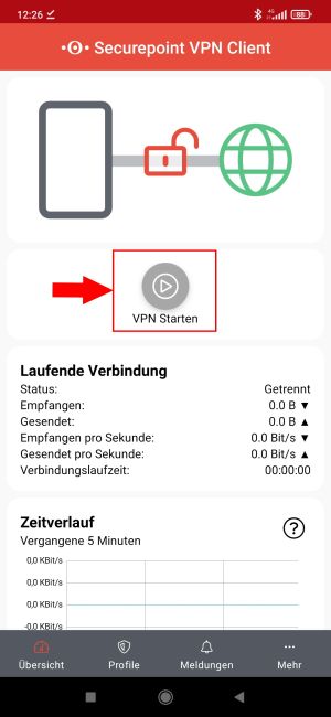 Zum Starten der VPN Verbindung klicken Sie auf die markierte Schaltfläche "VPN Starten".