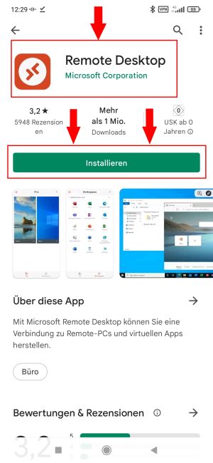 Öffnen Sie hier ebenfalls den Google Play Store und geben in das Suchfeld "Remote Desktop" ein.