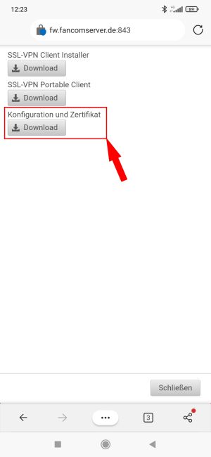 Zu Beginn ist es erforderlich dass Sie die Konfiguration und das Zertifikat für die VPN-Verbindung herunter laden.