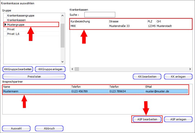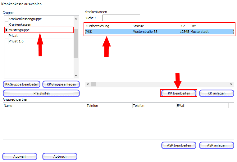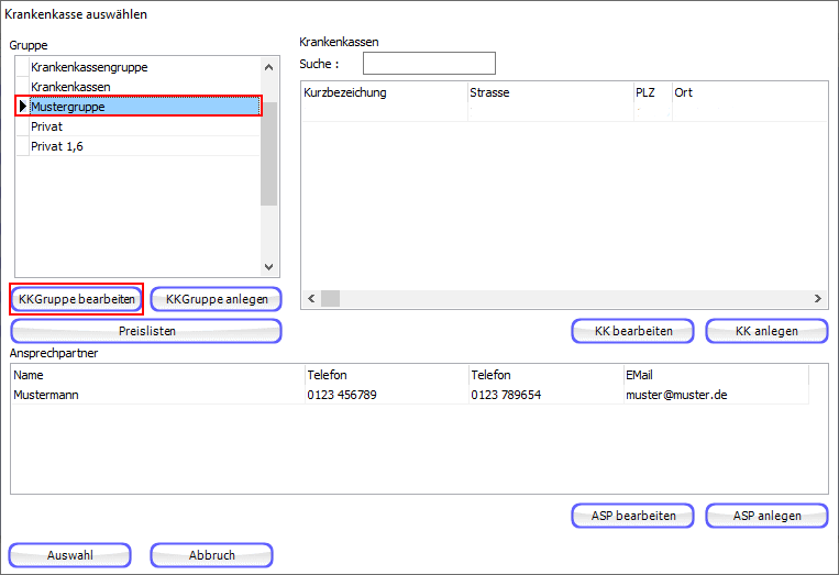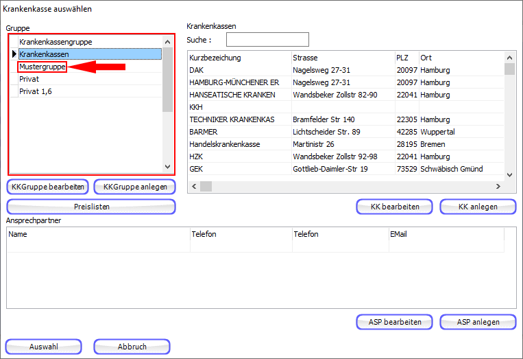 Anmerkung: Die standardmäßig bereits vorhandenen Gruppen "Krankenkassen" & "Privat" können nicht bearbeitet werden!