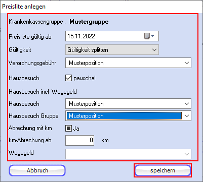 Haben Sie alle notwendigen Daten für die Preisliste definiert, klicken Sie zur Übernahme Ihrer Eingaben auf die Schaltfläche "speichern".