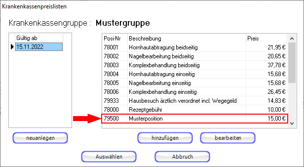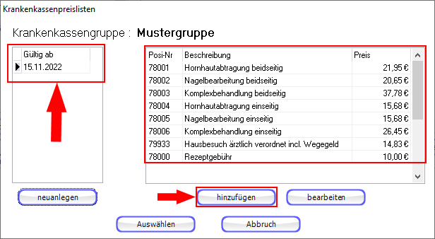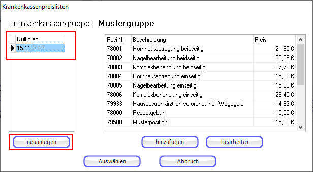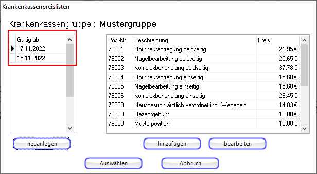Folglich befinden Sie sich wieder im Fenster "Krankenkassenpreislisten".