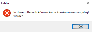 Bei dem Versuch, eine Krankenkasse in dieser Gruppe zu bearbeiten oder neu anzulegen, würden Sie die nebenstehende Fehlermeldung erhalten.Diese Gruppe wird ggf. mit Updates aktualisiert.