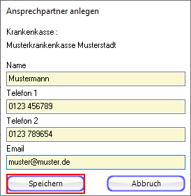 Danach befinden Sie sich im Fenster "Ansprechpartner anlegen".
