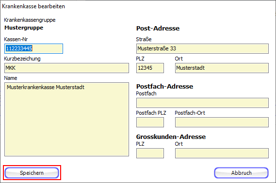 Folgend öffnet sich das Fenster "Krankenkasse bearbeiten".