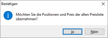 Da hier bereits eine Preisliste vorhanden war, bietet Ihnen PodoPrax® nun die Möglichkeit. die Positionen und Preise aus der vorherigen Preisliste zu übernehmen.