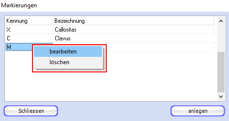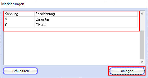 Standardmäßig sind nach der Installation von PodoPrax® zwei Markierungen vordefiniert.