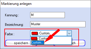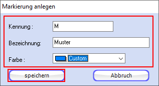 Zum endgültigen Anlegen der neuen Markierung klicken Sie nun auf die Schaltfläche "speichern".