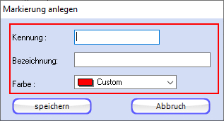 Hier geben Sie zunächst eine gewünschte Kennung und Bezeichnung für die Markierung fest.