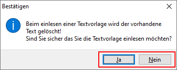 Zum endgültigen Einfügen einer Textvorlage klicken auf die Schaltfläche "Ja".