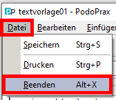 Zum Einen können Sie über den Menü-Eintrag "Datei" auf den Menüpunkt "Beenden" klicken.
