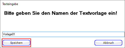 Zum Speichern der Vorlage klicken Sie auf das "Speichern" Symbol.