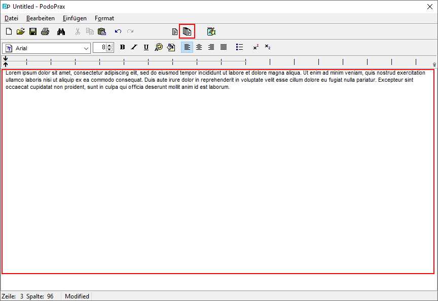 Neben den standard Möglichkeiten eines Texteditors bietet Ihnen PodoPrax® noch einige Besonderheiten.