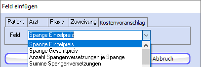 Hier haben Sie die Möglichkeit Kostenvoranschläge etc via Feld in Ihre Vorlage einzufügen.