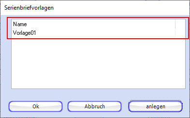 Beim ersten Aufruf der "Serienbriefvorlagen" sind demensprechend noch keine Vorlagen vorhanden.