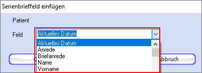 Daraufhin öffnet sich das Fenster "Serienbrieffeld einfügen".
