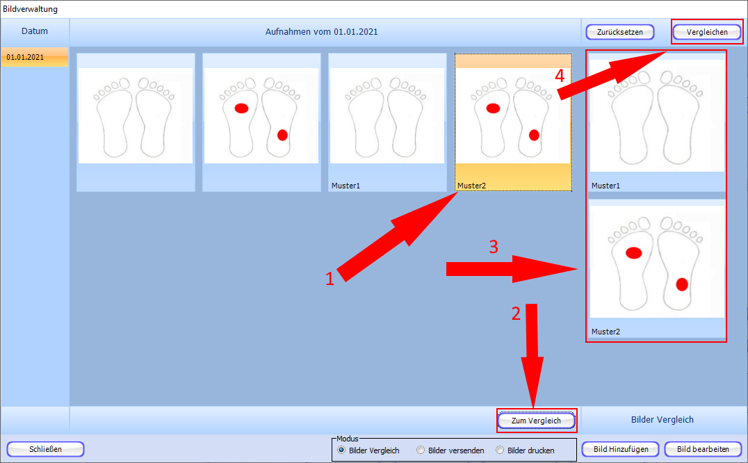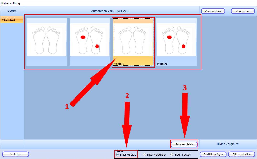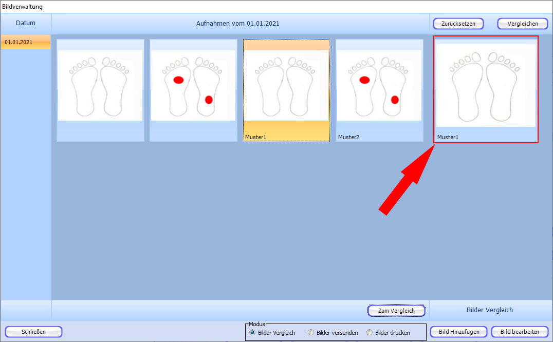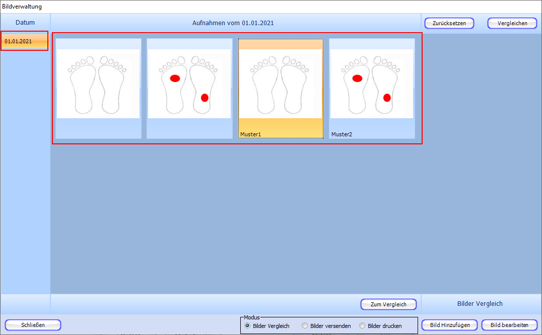 Im folgenden Abschnitt wird Ihnen der Ablauf für das Vergleichen von Behandlungsbildern erläutert.
