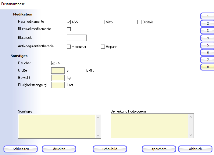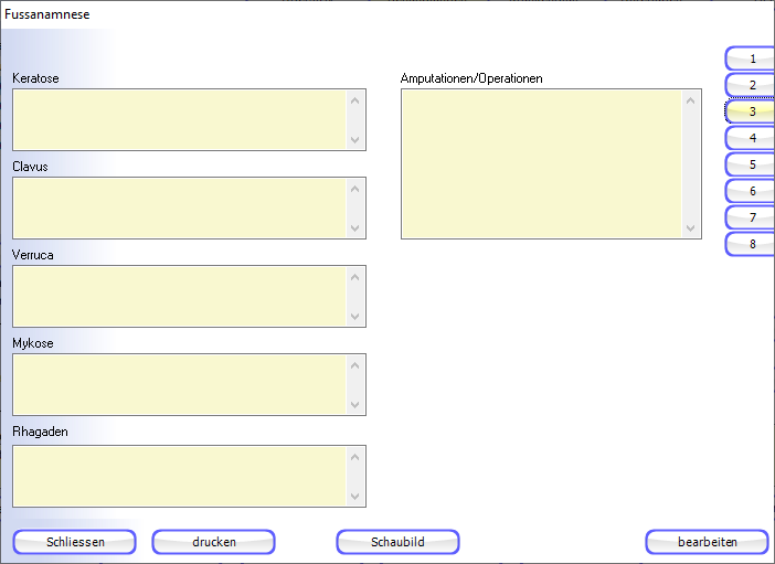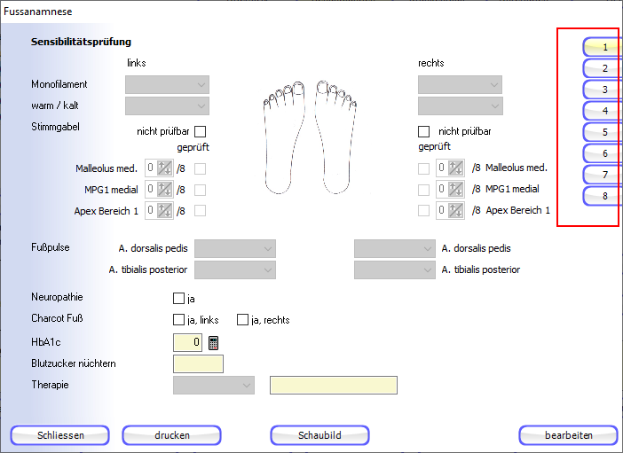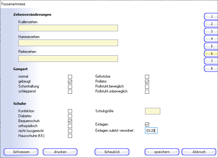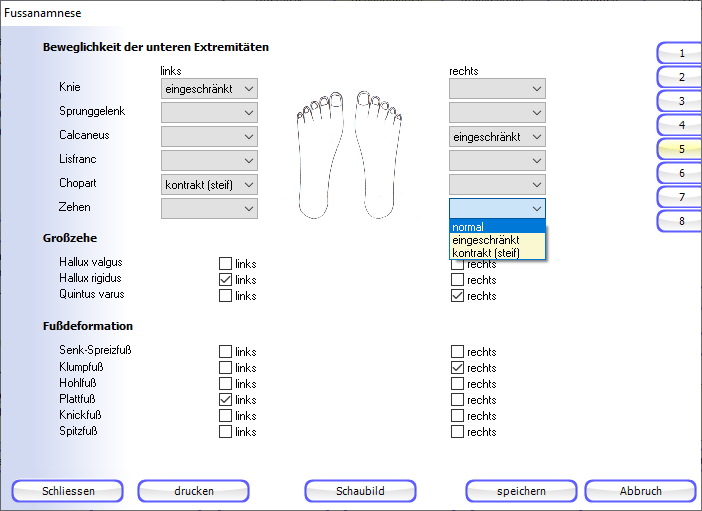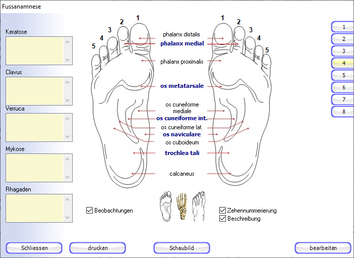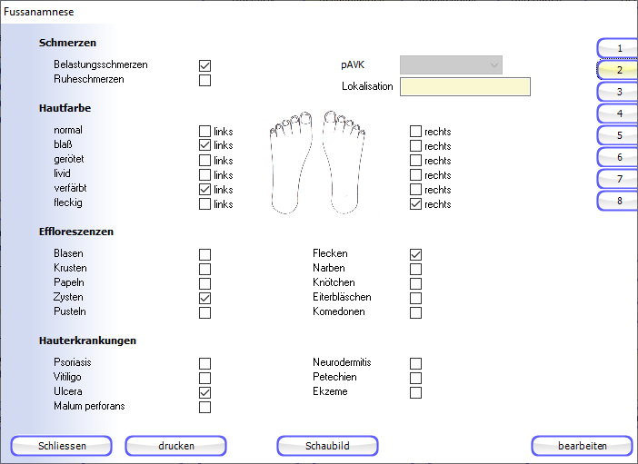 Bei der Fußanamnese haben sie eine Vielzahl an Möglichkeiten um eine optimale und detaillierte Anamnese zu dokumentieren.