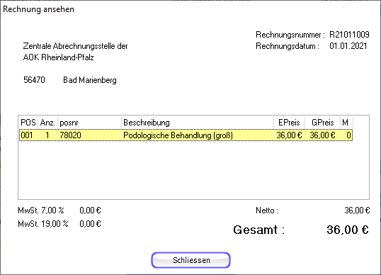 An dieser Stelle erhalten Sie eine Übersicht zu allen Rechnungen ihres Patienten.