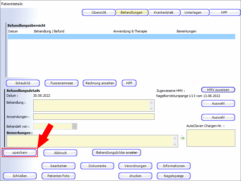 In diesem Reiter bietet Ihnen PodoPrax® die Möglichkeit Ihrer Dokumentation noch genauere Angaben und Positionen hinzuzufügen.