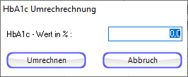 Hier haben Sie die Möglichkeit direkt in PodoPrax den HbA1c Wert umzurechnen.
