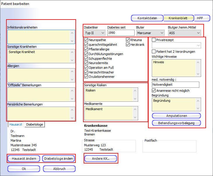 Hier können Hausarzt und Diabetologe bearbeitet werden.