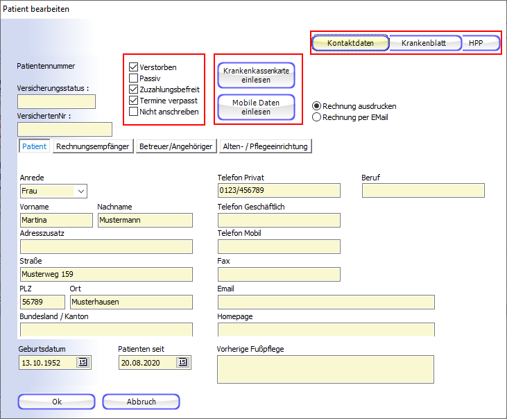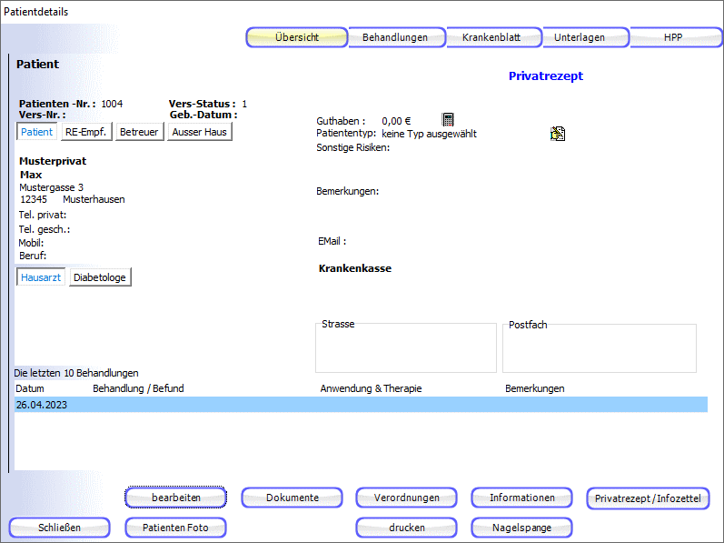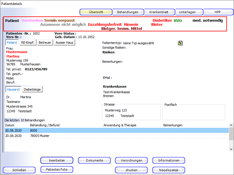Je nachdem welche Veränderungen sie an den Daten des patienten vorgenommen haben, sind diese in diesem Bereich optisch deutlich hervorgerufen in den Patientendetails.