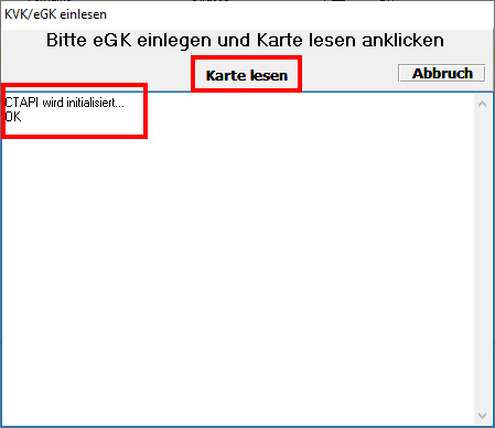 Nun stecken Sie die KVK/eGK in das Kartenlesegerät und klicken im Anschluss auf die Schaltfläche "Karte lesen".