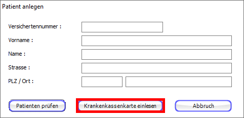 Zum Einlesen der Versichertenkarte klicken Sie auf die Schaltfläche "Krankenkassenkarte einlesen".
