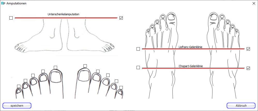Unter dieser Option können Sie Amputationen des Patienten optisch definieren.