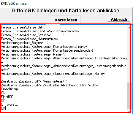 • Anschließend öffnet sich das Fenster "KVK/eGK einlesen".