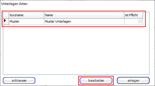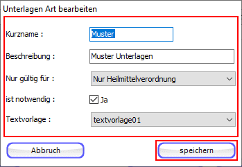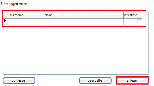 Im Anschluss öffnet sich das Fenster "Unterlagen Art anlegen".